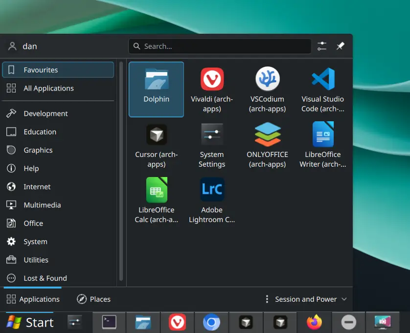 CachyOS menu and apps